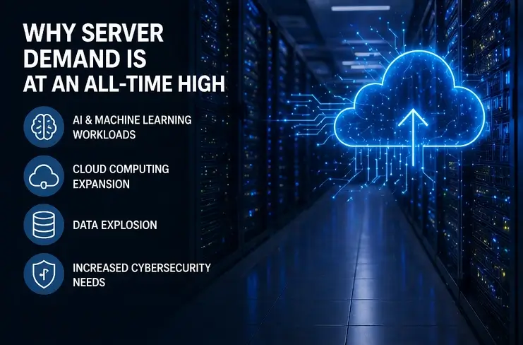 Server demand is rising due to AI, cloud computing, and massive data growth.