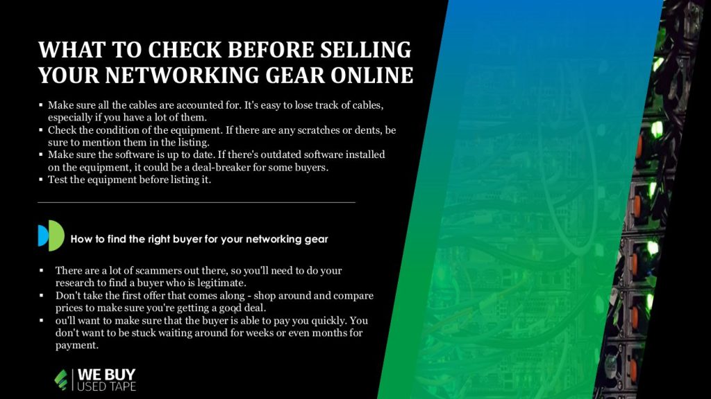 When it comes to selling networking gear online, there are a few things you should keep in mind. First and foremost, you want to make sure that you’re getting the best possible price for your equipment. To do this, it’s important to compare prices from a variety of different sources. You can use online auction sites, classifieds websites, and even forums to find potential buyers.